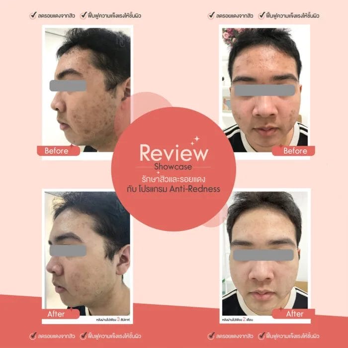 Anti-Redness เป็นโปรแกรมการรักษารอยสิว เหมาะสำหรับผู้ที่มีสิวไม่มาก หรือหายจากสิวแล้ว แต่ยังคงมีรอยแดง หรือรอยดำจากสิวทิ้งไว้