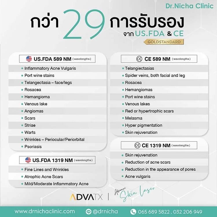 การรักษาด้วยเลเซอร์ ADVA Light หรือ ADVATx จะครอบคลุมปัญหาเหล่านี้ไป พร้อมกับปรับสภาพผิวให้แข็งแรงขึ้น ช่วยลดการจ่ายยากิน หรือยาทาที่ไม่จำเป็น ที่อาจมีผลต่อสุขภาพระยะยาว มีความปลอดภัยต่อคนไข้มากกว่า