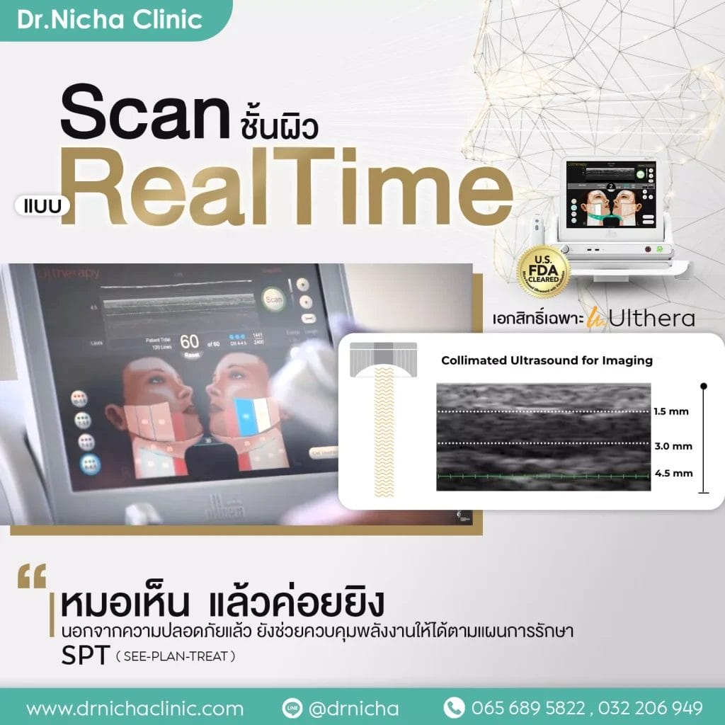 Ultherapy เป็นเทคโนโลยีเดียว ที่มีจอสแกนชั้นผิวแบบ Real Time ไม่ต้องคาดเดาว่าจะลงถูกจุดที่ต้องการยกกระชับหรือไม่ จึงปลอดภัย ไม่ต้องพักฟื้น เห็นผลลัพธ์ความเปลี่ยนแปลงได้ในทันทีและยาวนานกว่า 1 ปี สามารถรับบริการได้ทั้งผู้หญิง และผู้ชาย